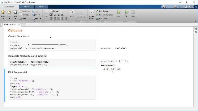 Computer algebra systems can represent parameters and variables in equations as symbols like \(f(x)=1-ax^2\). Using a CAS you can solve, manipulate, and plot \(f(x)\) without having to generate numeric data. You can perform sensitivity studies to learn how an equation changes due to its parameters by easily substituting numerical values for symbolic parameters and variables. Using the Live Editor in MATLAB®, symbolic calculations look like the equations you write on paper.