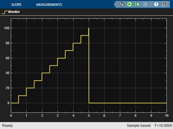 After configuring NVRAM and Diagnostic Service Component blocks in the integration model, simulate the model. The simulation exercises the AUTOSAR NvM and Dem service calls in the throttle position sensor and monitor component models.