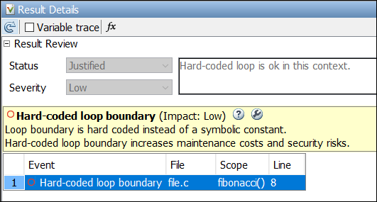 Annoated result as it appears in the Polyspace user interface
