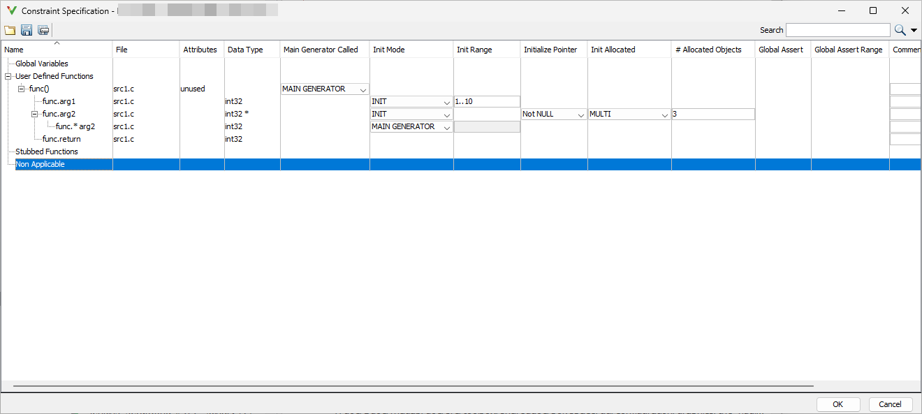 ,function_name.arg1, etc.function_name.arg2Specify your constraints on one or more of the function inputs. For more information, see External Constraints for Polyspace Analysis.