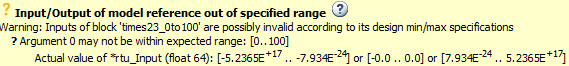 To investigate the root cause of the issue further, return to the model and identify which inport or outport causes the issue. For details, see Verify If Input and Output of Referenced Model Are Within Bounds.