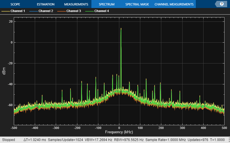 spectrumScope = spectrumAnalyzer('SampleRate', radio.MasterClockRate/radio.DecimationFactor);