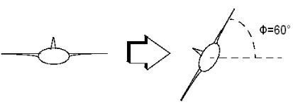 Para lograrlo, debe diseñar un controlador que ordene un giro estable pasando por un alabeo de 60°. Además, supongamos que el ángulo de cabeceo debe permanecer lo más próximo posible a cero.