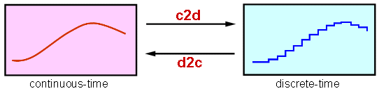 c2ddiscretiza modelos de tiempo continuod2ccalcula extensiones de tiempo continuo de modelos de tiempo discretod2dremuestrea modelos de tiempo discreto.