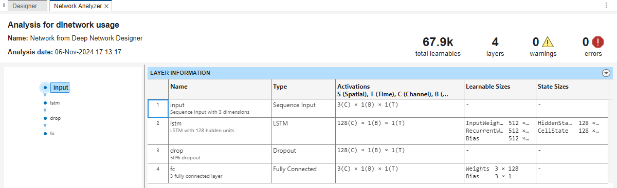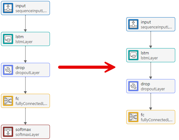 Se abrirá una red preconstruida adecuada para problemas de clasificación de secuencias. Puede convertir la red de clasificación en una red de regresión editando las capas finales.