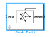 También puede exportar el modelo como un único bloque de red. En Deep Network Designer, seleccione Export as como Single Network Block. En este ejemplo, la app exporta la red como un bloque Stateful Predict.