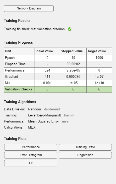 devuelve una red neuronal de ajuste de funciones con una capa oculta cuyo tamaño es net = fitnet(hiddenSizes,trainFcn)hiddenSizes y una función de entrenamiento especificada por trainFcn.