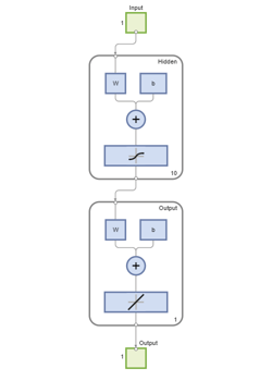 El ajuste de funciones es un proceso que consiste en entrenar una red neuronal con un conjunto de entradas para producir un conjunto de salidas objetivo asociado. Una vez que haya creado la red con el número de capas ocultas y el algoritmo de entrenamiento deseado, deberá entrenarla usando un conjunto de datos de entrenamiento. Una vez que la red neuronal haya ajustado los datos, creará una generalización de la relación entrada-salida. Luego, podrá usar la red entrenada para generar salidas para entradas con las que no ha sido entrenada.