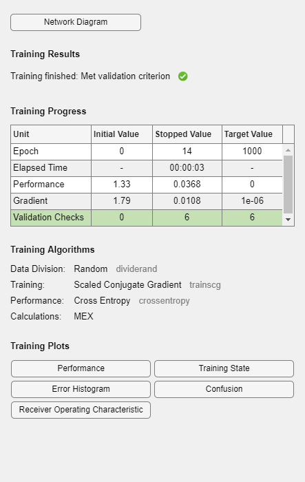 plotconfusion( representa una matriz de confusión para las etiquetas verdaderas targets,outputs)targets y las etiquetas predichas outputs. Especifique las etiquetas como vectores categóricos o con el formato uno de N (one-hot).