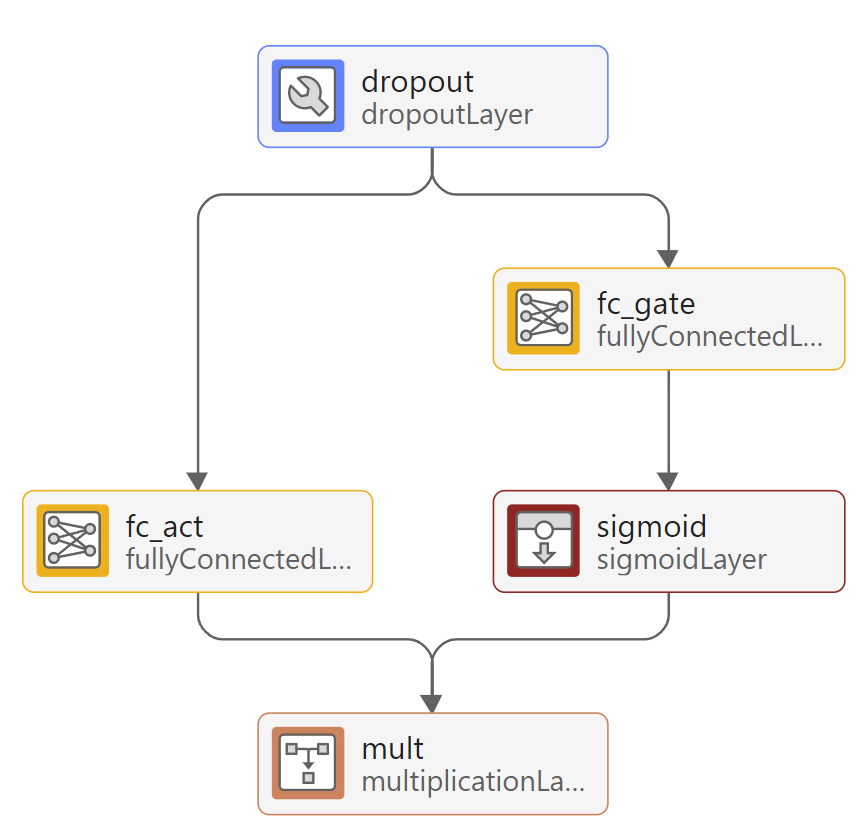 TFTs use gated linear unit (GLU) activations. To view an example of a GLU, double-click on the lstm_gate layer in Deep Network Designer.