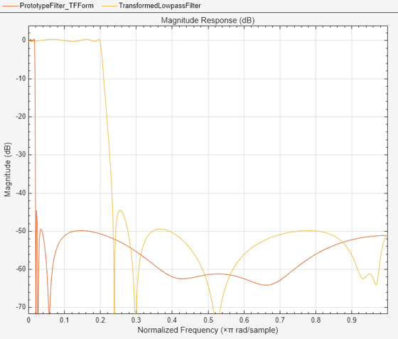 The prototype lowpass filter is specified with the numerator and denominator
