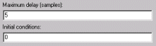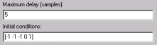 The settings in this section specify fixed initial conditions. For a fixed initial condition, the block initializes each of D samples in memory to the value entered in the Initial conditions parameter. A fixed initial condition in sample-based mode can be specified in one of the following ways: