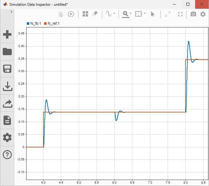 3. To view the simulation results, in the Review Results section of the toolstrip, click Data Inspector. You can observe that the speed feedback signal approximately matches with the reference speed.