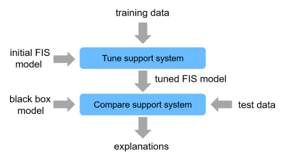 A fuzzy inference system (FIS) is a transparent model that represents system knowledge using an explainable rule base. Since the rule base of a fuzzy system is easier for a user to intuitively understand, a FIS is often used as a support system to explain an existing black box model.