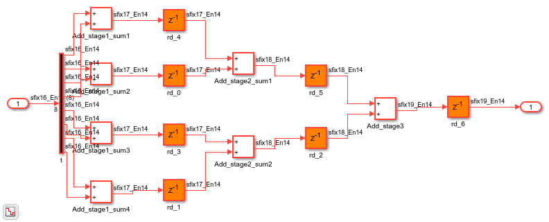 This example shows how you can distribute pipeline registers at the output of a Sum of Elements block that accepts vector inputs.