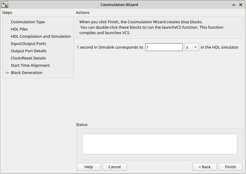 Click Finish to generate the HDL cosimulation block.