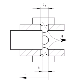 The minimum orifice opening hMin is calculated approximately using the expression: