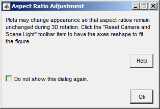 ). Al utilizar la barra de herramientas de la cámara, MATLAB cambia de manera automática al modo de visualización 3D pero primero se lo notifica mediante el siguiente cuadro de diálogo.