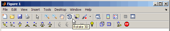 La barra de herramientas de la figura y la barra de herramientas de la cámara ofrecen maneras de explorar las gráficas tridimensionales de forma interactiva. Para visualizar la barra de herramientas de la cámara, seleccione Camera Toolbar en el menú View de la figura.