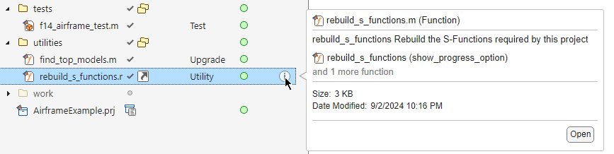 When you rename, delete, or remove files or folders in a project, the project runs a dependency analysis to check for effects on other project files. When the analysis is complete, the project displays the affected files. Starting in R2025a, the project looks for references to the modified file in all projects in the project hierarchy. If you have not yet run a dependency analysis on the project, the analysis may take some time to run. Subsequent analyses are incremental updates, so they run faster.