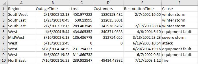 opts = detectImportOptions("airlinesmall_subset.csv");Use the TreatAsMissing property to specify the characters in the data that are place holders for missing instances. In this example, the two numeric variables ArrDelay and DepDelay contain missing fields that contain the text NA.