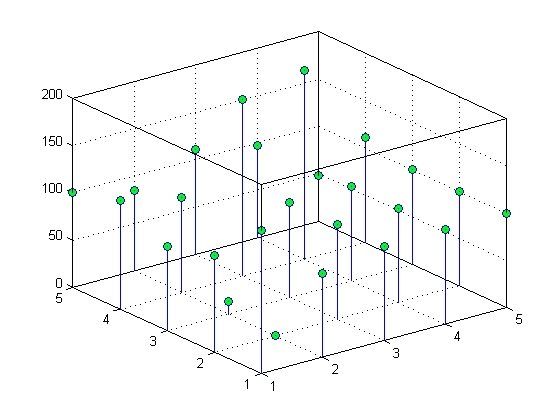 stem3(x,y,z,'MarkerFaceColor','g')