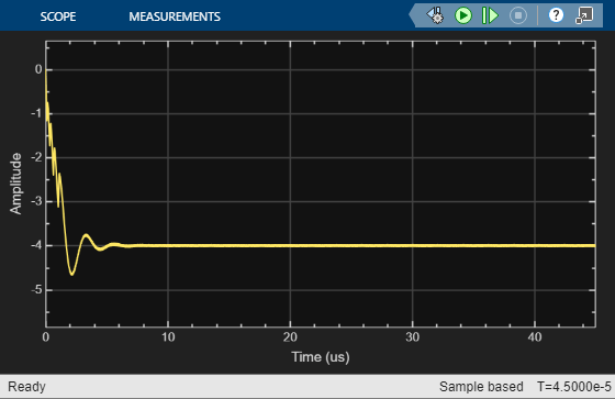 In the configuration of this model, the charge pump impairments are activated. Therefore, the charge pump defines a fixed step discrete sample time to drive the loop filter. Enabling the impairments also provides the level of detail needed in the later stages of development, at the cost of increased simulation run time. If the charge pump impairments are disabled, then the loop filter can be configured to provide its own sample time. However, a lowpass resampler, such as that used in the Loop Filter block, is required to convert from the variable step discrete sample time of the charge pump without impairments to the fixed step discrete sample time of the loop filter.