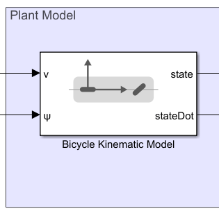 The Bicycle Kinematic Model block simulates the simplified kinematics of a car-like vehicle.