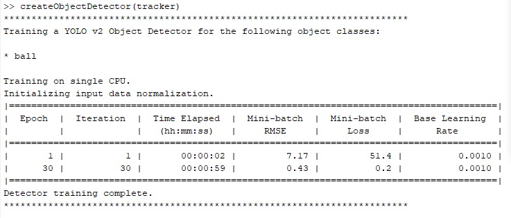 Train the YOLOv2 object detector and save it as the MAT file detectorSaved.mat.