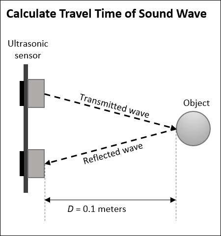 2. The Sample time parameter and the model base rate must be greater than the total time required by the sensor to transmit and receive the sound wave. For example, if the object is placed 0.1 meters away from the sensor, the Sample time parameter specified must be greater than 0.000301 seconds.