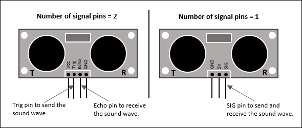 Select the number of signal pins on the ultrasonic sensor to send and receive sound waves.