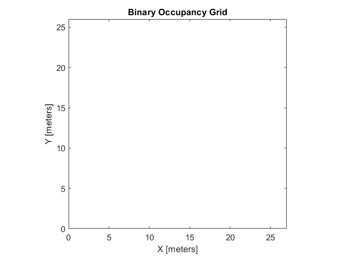 [mapdimx,mapdimy] = size(simpleMap); map = binaryOccupancyMap(mapdimy,mapdimx,10); mapFigure = figure('Name','Unknown Map'); show(map);