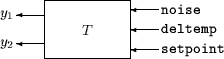A simple system interconnection, identical to the system illustrated in the iconnect description. Consider a three-input, two-output LTI matrix T,