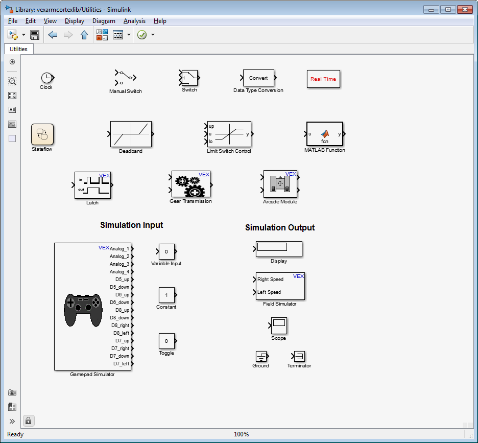 Alternatively, from the Simulink Library Browser, locate and select Simulink Coder™ Support Package for ARM Cortex-based VEX Microcontroller.