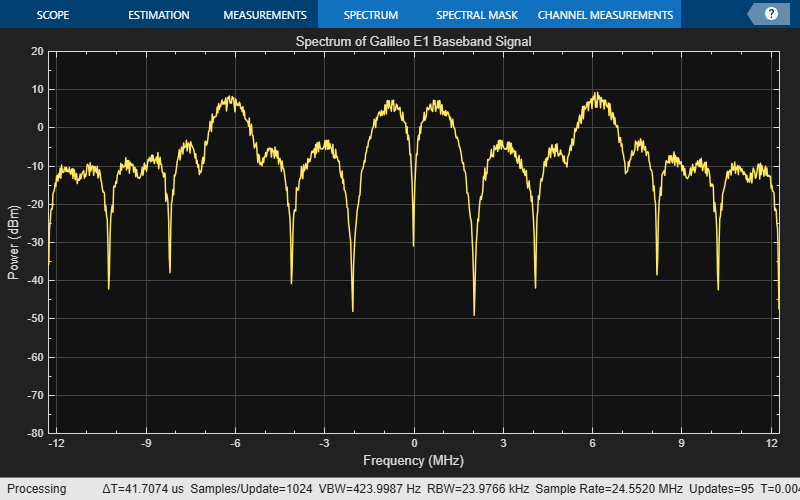 generates the time-domain Galileo waveform.waveform = galWaveObj({fnavbits,inavbits})