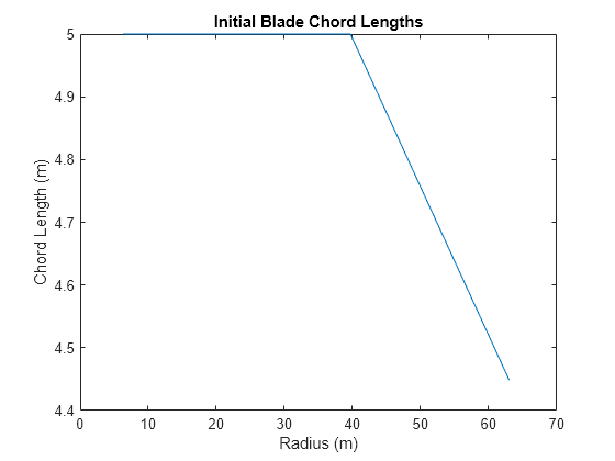 figure; plot(Data.radius_TLU, Opt.Init.chord); ylabel('Chord Length (m)'); xlabel('Radius (m)'); title('Initial Blade Chord Lengths');