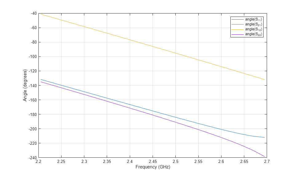 figure; rfplot(sparamLine,'angle');