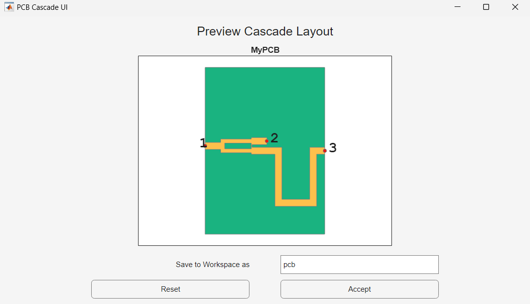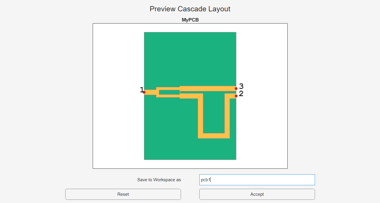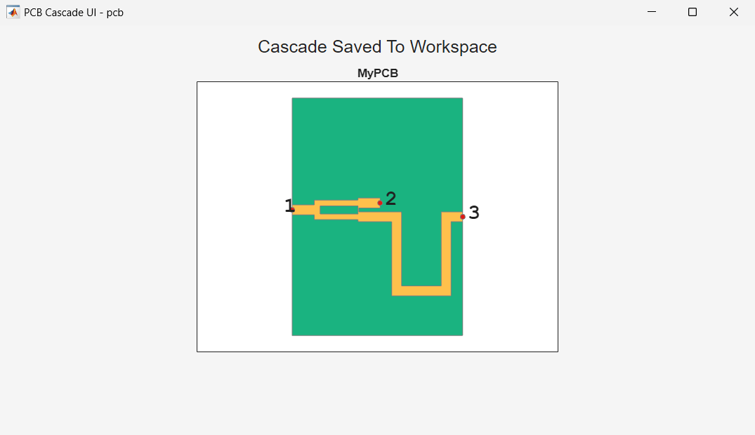 Save the cascaded object to the workspace with the name pcb by entering the variable name in Save to Workspace as field.