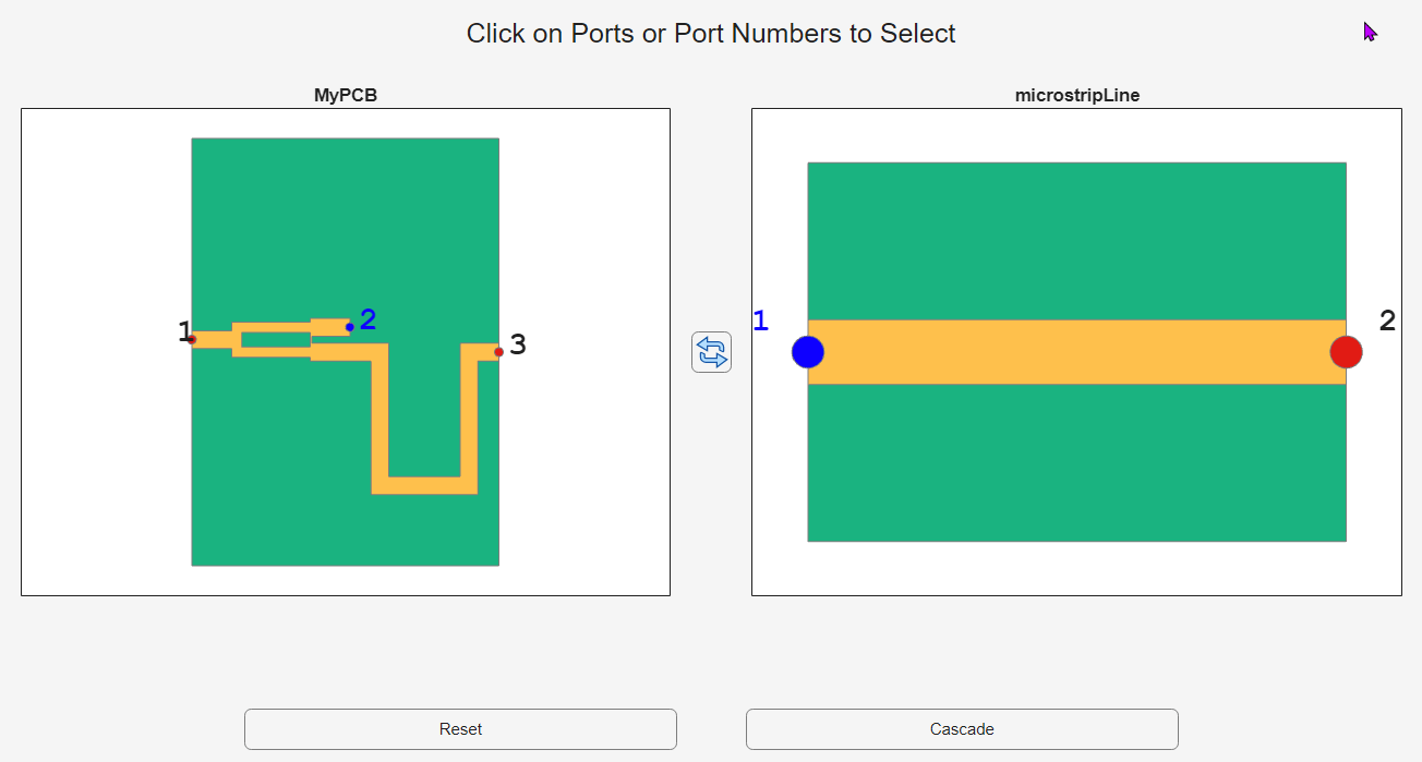 Connect port 2 of the cascaded PCB structure created in the previous step with port 1 of the microstrip line.