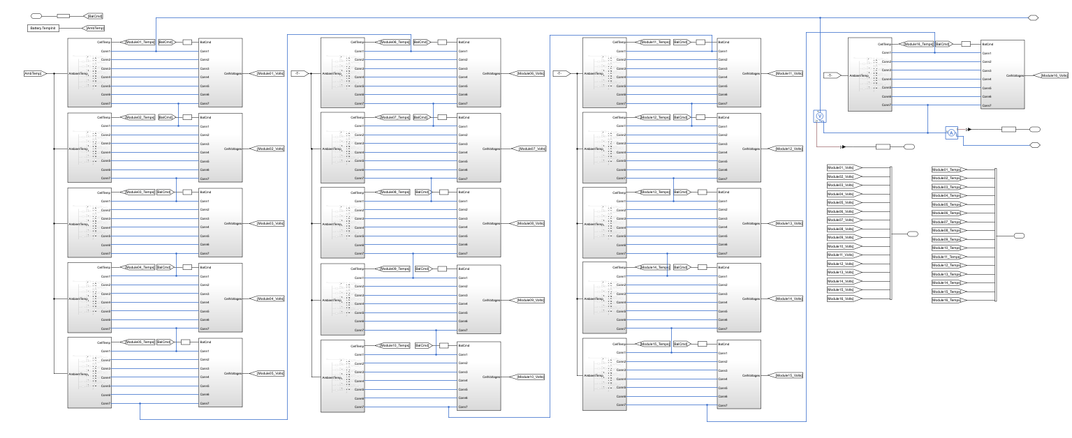 3. You can probably improve the compilation performance even more by restructuring the model into eight repeated subsystems instead of 16. Analyze the performance results and make a decision based on both compilation performance and maintaining the modeling hierarchy. Even if restructuring the model into eight reusable components compiles slightly faster, you might want to maintain the structure where one battery module corresponds to one subsystem.