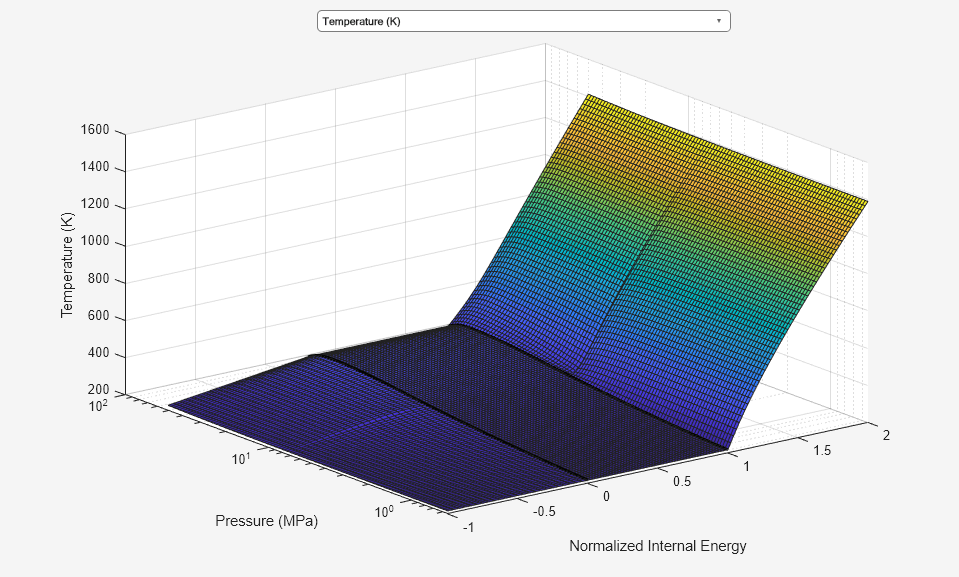 Las dos figuras siguientes representan las propiedades del fluido del CO2 (R744) como una función de presión (p) y energía interna normalizada (unorm) y como una función de presión (p) y energía interna específica (u), respectivamente. El fluido es: