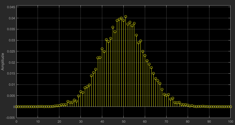 To open the Array Plot viewer and see the histogram of the signal, double-click the Array Plot block. The histogram takes the form of a normal distribution curve.