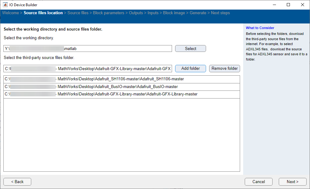 Once the Source files location page loads, select the working directory and add third-party source files.