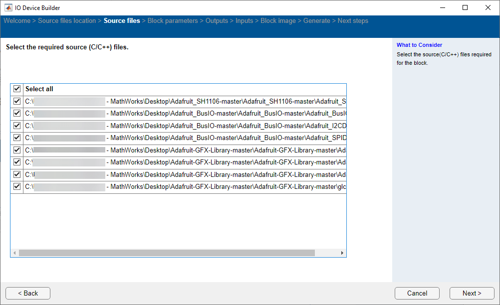 On the Next Steps page, the generated files and recommended next actions are displayed. The generated files are created in a directory. This directory also includes a Dependencies folder that contains selected third-party source files. Simply copy these files and the folder to your desired location and integrate them into your Simulink project.