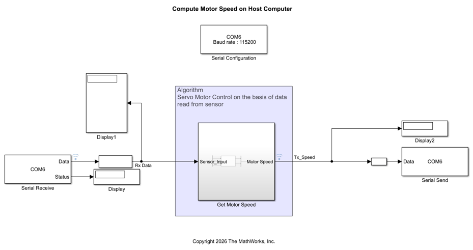 Open the arduinoHostSerialSetMotorSpeed Simulink model.