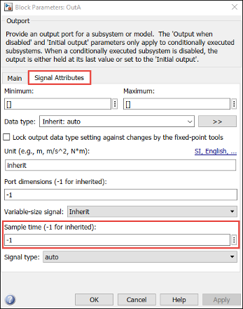 In the Main tab, specify the Sample time parameter. When you specify this parameter as