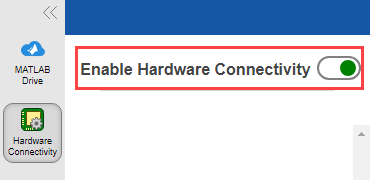 1. Execute ~/bin/MATLABConnector toggle in a terminal window and ensure that Enable Hardware Connectivity toggle switch is on.