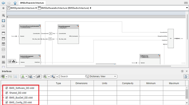 Check that the Simulink data dictionary used for data management in each Simulink model is available in the Interface Editor (System Composer).