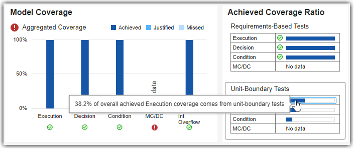 5. View the percentage of the overall achieved execution coverage that comes from unit-boundary tests. In the Achieved Coverage Ratio subsection, under Unit-Boundary Tests, point to the Execution bar.