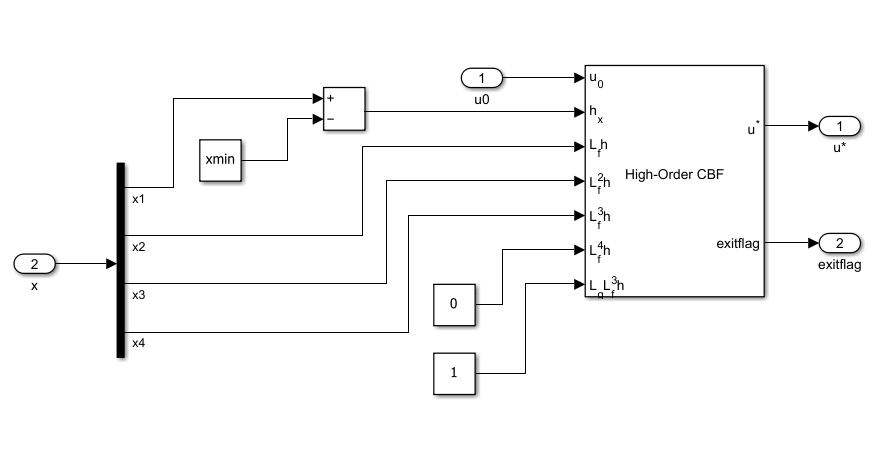 The High-Order Control Barrier Function block requires Optimization Toolbox™ software.